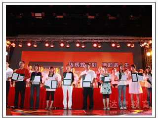 现场举行了隆重的毕业生颁证及优秀学员表彰仪式。来自达德各分校的六十名毕业生,代表2008年一千二百多名毕业生领取了毕业证书,六十一名学生获得了“优秀学员”称号。