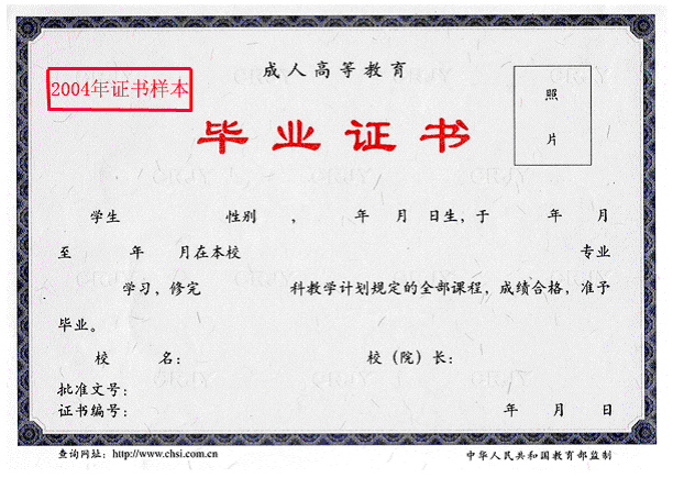 全国成人高等教育毕业证书样式